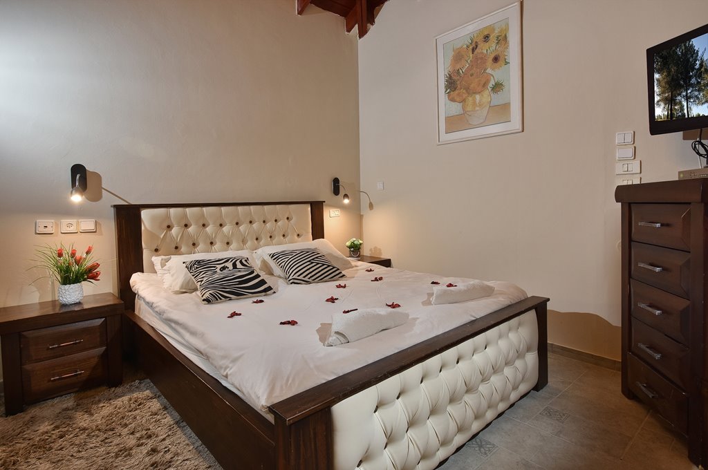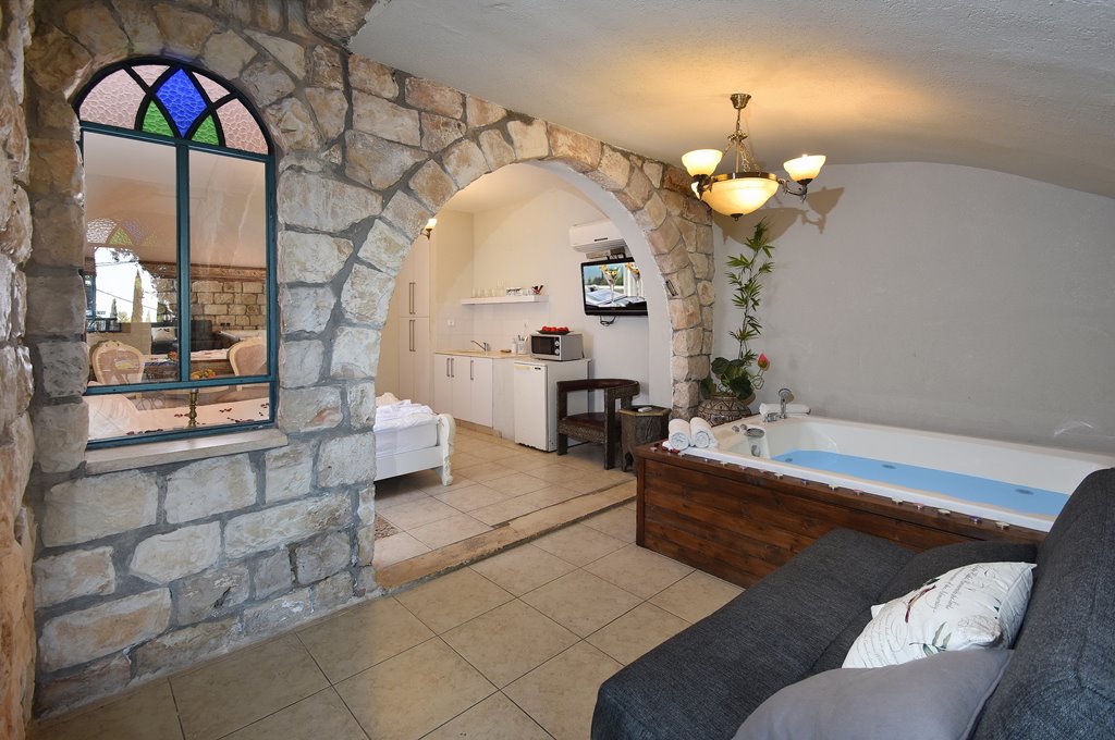 סוויטות המעוצבות כחלל פתוח, כל סוויטה כוללת מיטה זוגית, ספה נפתחת, ג'קוזי פרטי בחדר, טלוויזיה בחיבור כבלים, חדר רחצה עם מגבות ותחליבים, מטבח מאובזר הכולל כיריים, מקרר, פינת קפה, מיקרוגל וכלי מטבח. ל 2 מהסוויטות יציאה למרפסת עם פינת ישיבה.