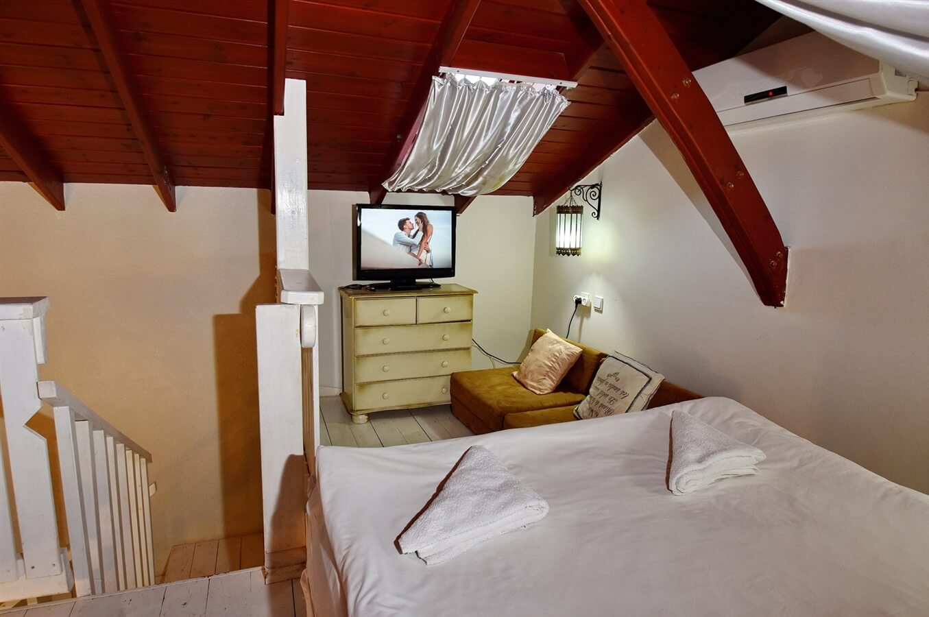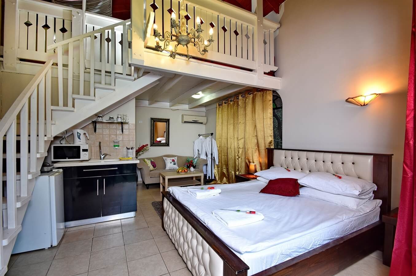 סוויטה עם קומת גלריה הכוללת 3 מיטות ללינת ילדים, חדר שינה זוגי, טלוויזיה בחיבור כבלים, חדר רחצה עם מגבות ותחליבים, מטבח מאובזר הכולל כיריים, מקרר, פינת קפה, מיקרוגל וכלי מטבח. בסוויטה יציאה למרפסת פרטית עם פינת ישיבה.