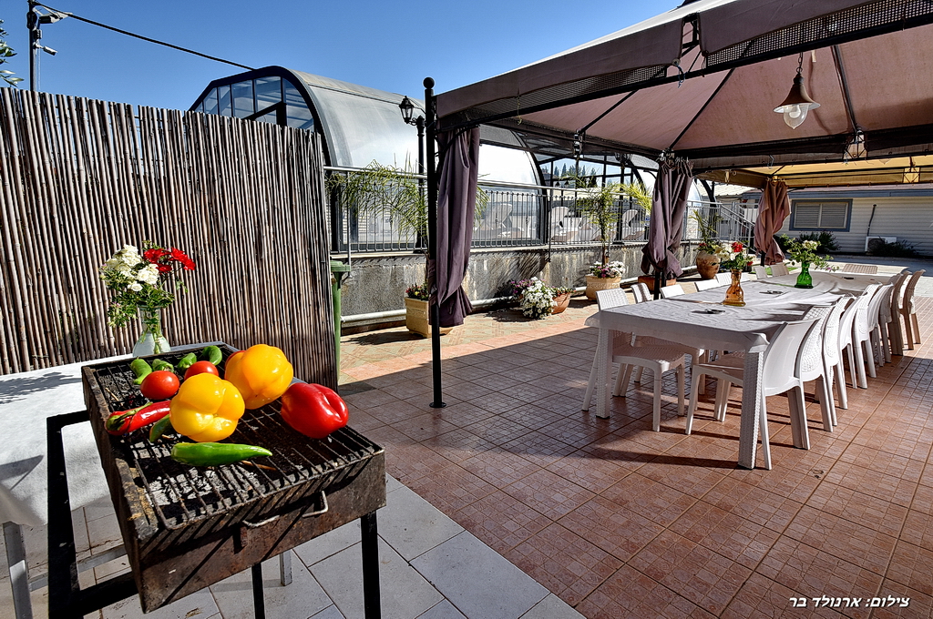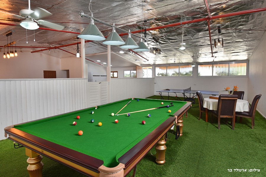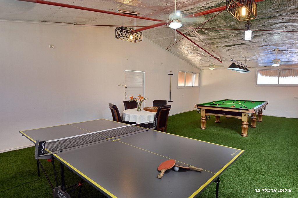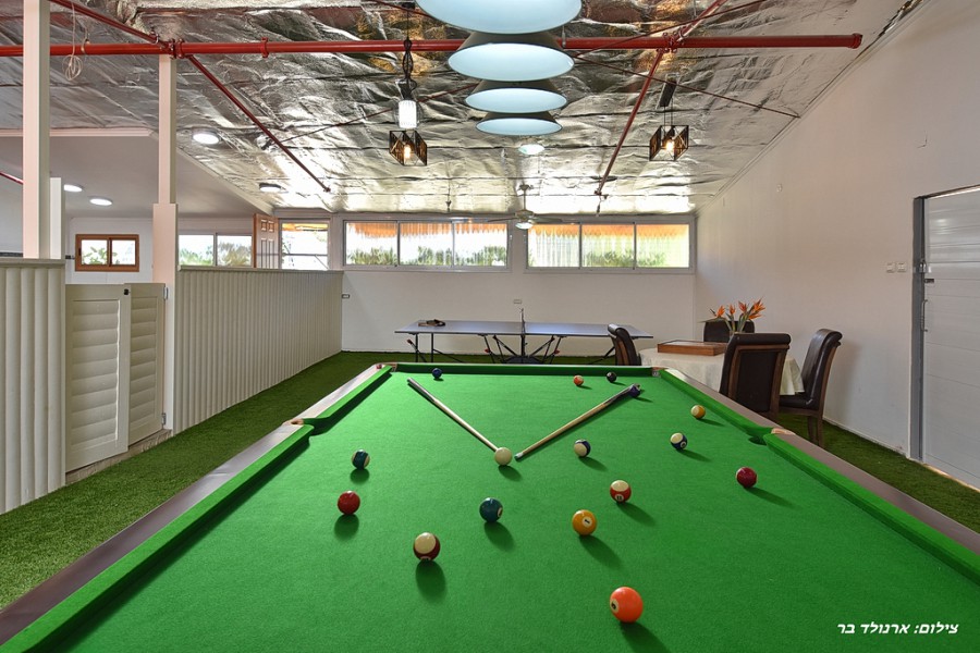 קודם כל חייבים לציין את הבריכה המדהימה במתחם, בריכה בנויה (5×10) המחוממת ומקורה בעונת החורף – איזה כיף שניתן ליהנות מבריכה במשך כל השנה! אורחינו יהנו גם ממגוון פינות ישיבה בסביבה ירוקה ממכרת, מיטות שיזוף, פינות מנגל מסודרות וחדר אוכל ענק, ממוזג, מאובזר במלואו וערוך לכמות אנשים גדולה, תוכלו לבשל לכם ארוחות ללא הגבלה – הציוד עלינו, האוכל עליכם! אוהבים לשחק? גם לזה דאגנו – תוכלו להנעים את זמנכם במשחק סנוקר או פינג פונג במתחם המקורה.