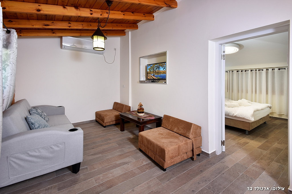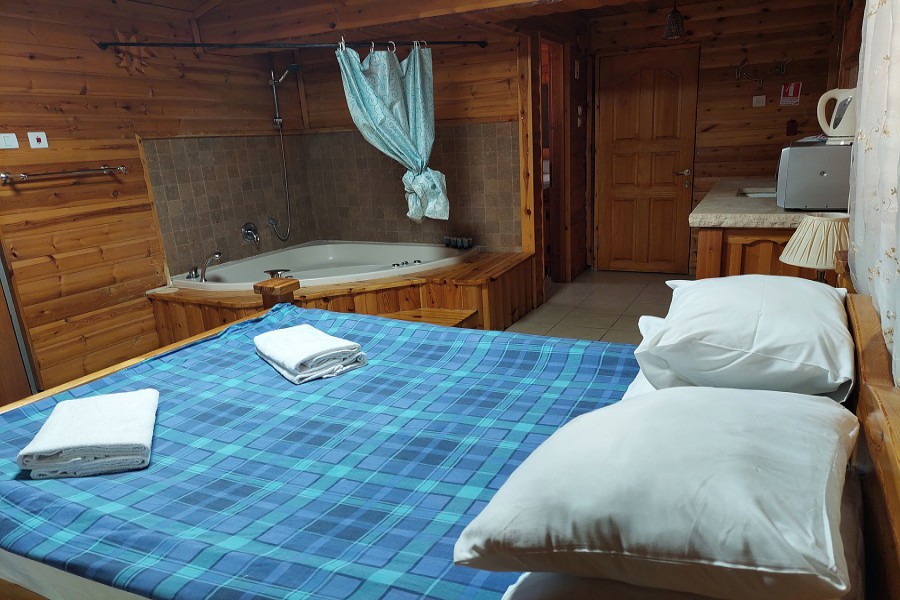 2 בקתות עץ מוקפדות באווירה כפרית, בעלות חדר שינה וסלון מרווחים. חדר שינה עם מיטה זוגית, סלון הכולל פינות ישיבה נפתחות ללינת ילדים, ג׳קוזי פרטי (באחת מהבקתות), שולחן אוכל, מטבחון מאובזר בקומקום, מיקרוגל, כירה חשמלית, כלי אוכל, כלי בישול, מקרר, פינת קפה ומכונת אספרסו, טלוויזיה עם חיבור ל yes, חדר רחצה עם תמרוקים, מגבות וחלוקים. בנוסף, תיהנו ממרפסת פרטית.