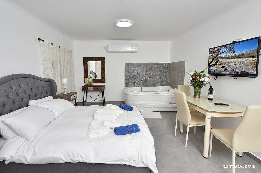 2 יחידות נופש באווירה רומנטית קסומה, מעוצבות כחלל פתוח וכוללות מיטה זוגית, ג׳קוזי פרטי, שולחן אוכל, מטבחון מאובזר בקומקום, מיקרוגל, כירה חשמלית, כלי אוכל, כלי בישול, מקרר, פינת קפה ומכונת אספרסו, טלוויזיה עם חיבור ל yes, חדר רחצה עם תמרוקים, מגבות וחלוקים. בנוסף תיהנו ממרפסת פרטית.