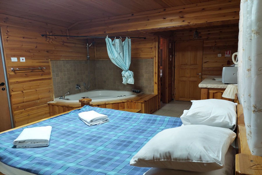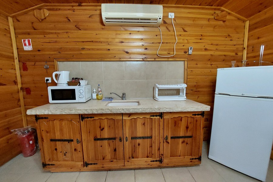 2 בקתות משפחתיות בעלות 2 חדרי שינה וסלון, מושלם למשפחות גדולות! חדר שינה עם מיטה זוגית, סלון גדול עם פינות ישיבה נפתחות ללינת ילדים, ג׳קוזי פרטי, שולחן אוכל, מטבחון מאובזר בקומקום, מיקרוגל, כירה חשמלית, כלי אוכל, כלי בישול, מקרר, פינת קפה ומכונת אספרסו, טלוויזיה עם חיבור ל yes, חדר רחצה עם תמרוקים, מגבות וחלוקים. בנוסף תיהנו ממרפסת פרטית.