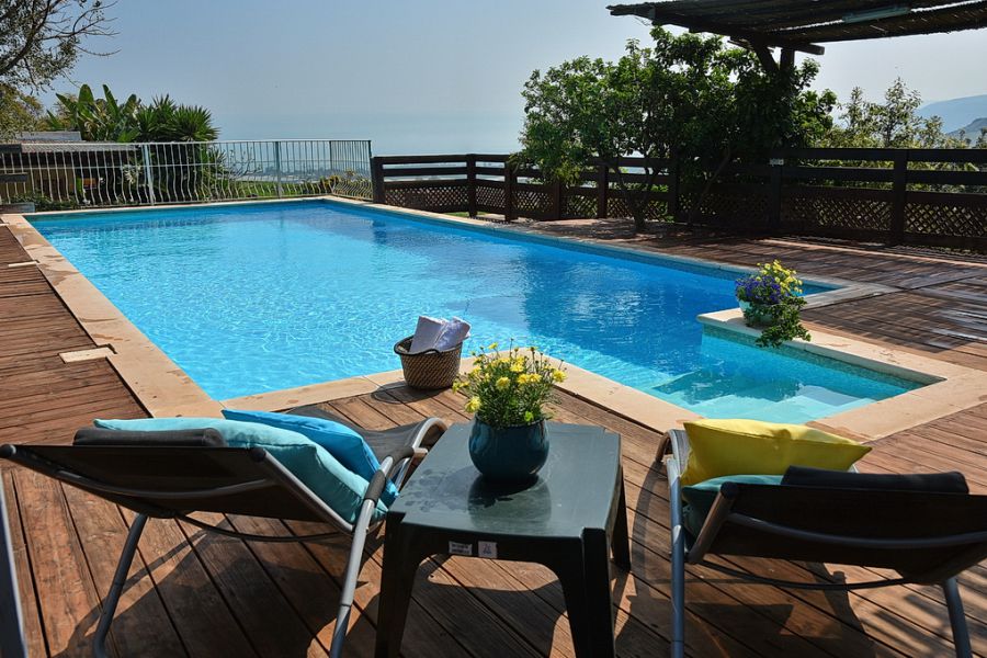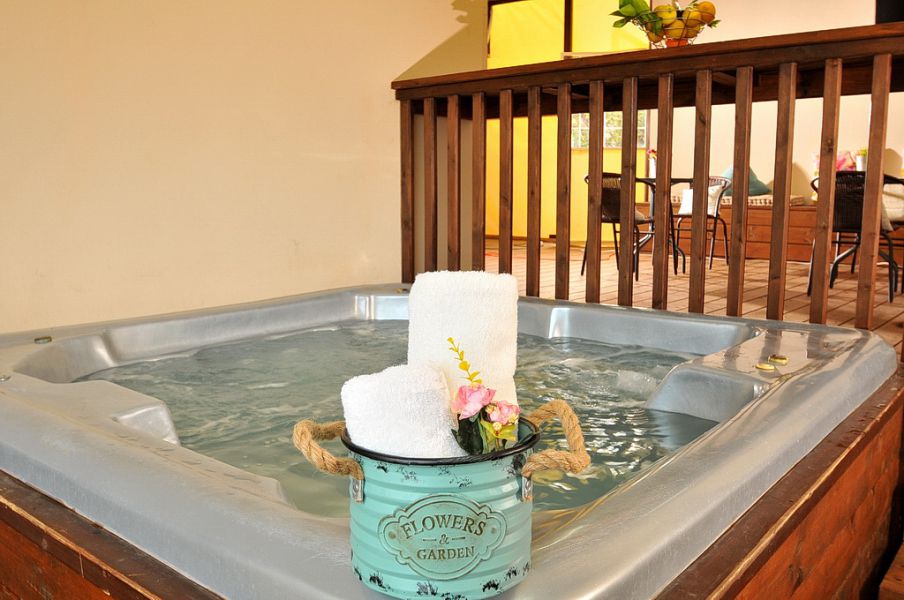 במתחם החוץ תהנו מבריכה גדולה מגודרת ומחוממת בעונה, פינות ישיבה, עמדת מנגל מסודרת, שולחן פינג פונג ומתחם סגור עם ג'קוזי ספא וסאונה (ניתן להוסיף שולחן אוכל לארוחות משותפות)