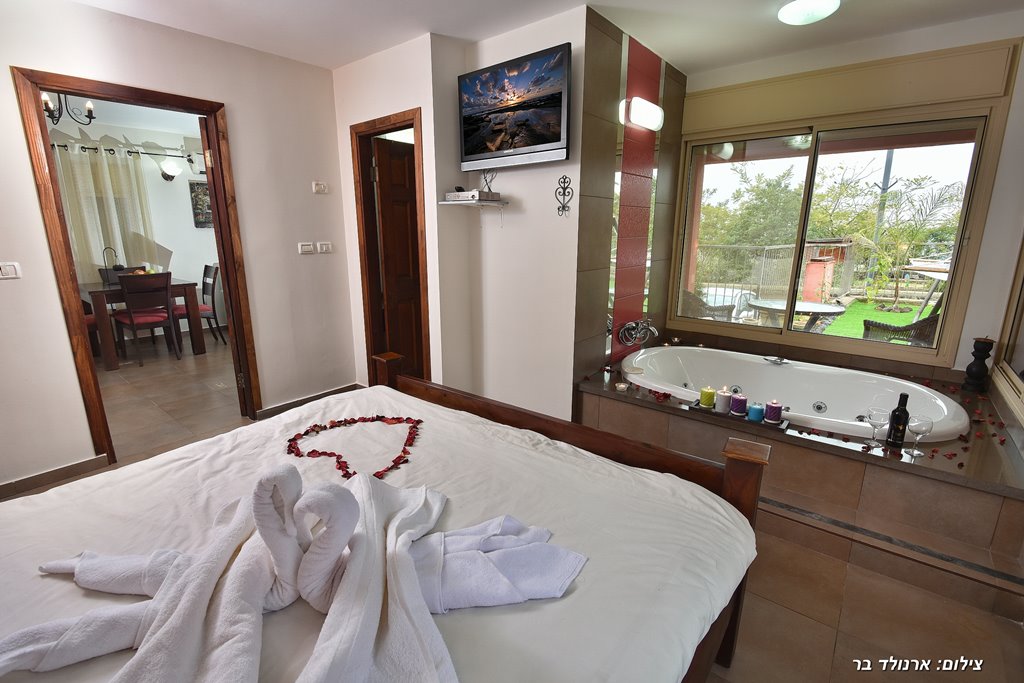סוויטה רומנטית במיוחד המעוצבת כחלל פתוח הכוללת מיטה זוגית, ג'קוזי, מטבחון מאובזר במקרר, פינת קפה, כיריים, מיקרוגל וכלי מטבח, חדר רחצה עם מגבות ותחליבי רחצה, טלוויזיה בחיבור לערוצים. לכל סוויטה מרפסת פרטית עם פינת ישיבה ומנגל.