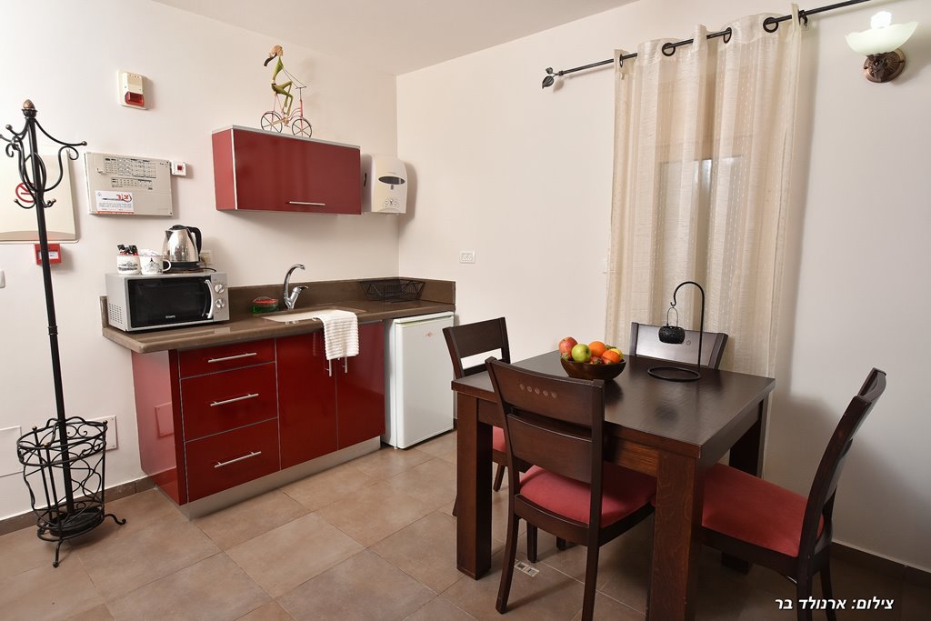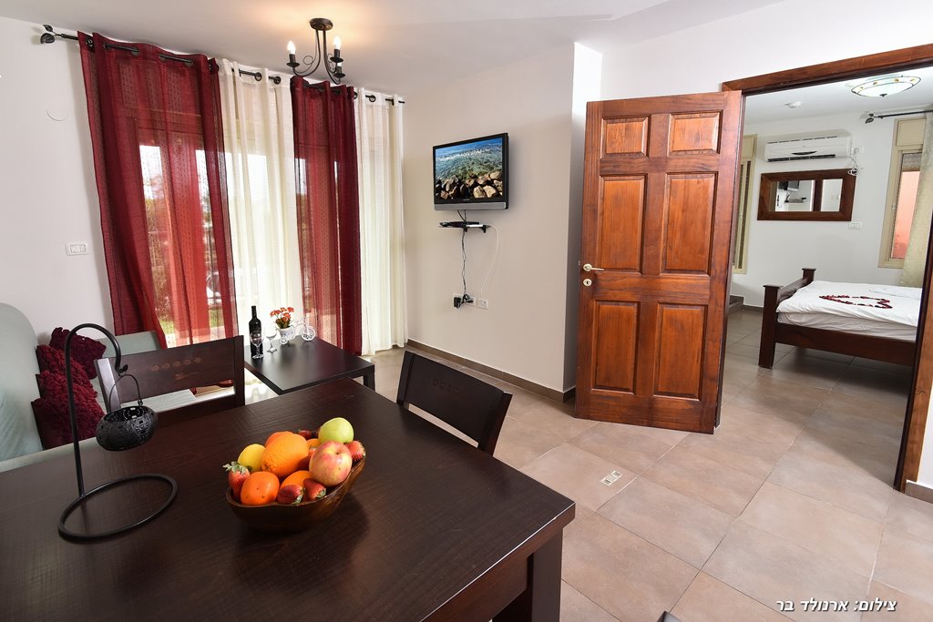 2 סוויטות משפחתיות עם חדר שינה זוגי, ג'קוזי פרטי, סלון עם ספה נפתחת (ואפשרות לעוד מזרן), מטבח מאובזר במקרר, פינת קפה, כיריים, מיקרוגל וכלי מטבח, חדר רחצה עם מגבות ותחליבי רחצה, טלוויזיה בחיבור לערוצים, לכל סוויטה מרפסת פרטית עם פינת ישיבה ומנגל.