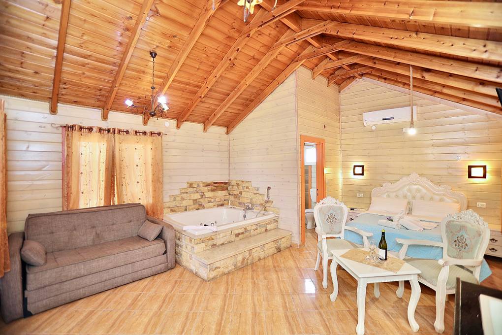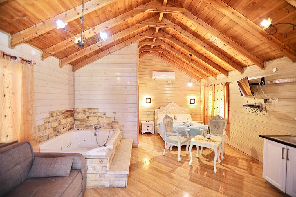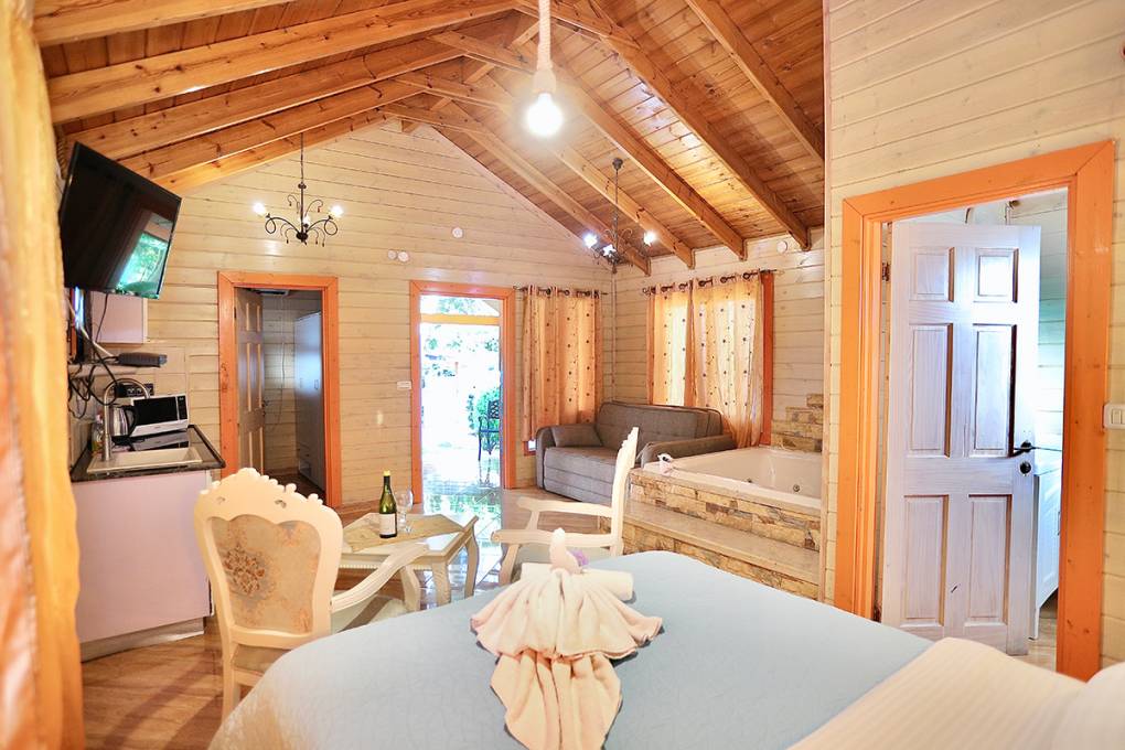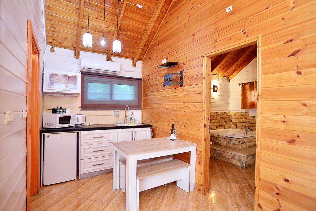 3 בקתות המתאימות לאירוח עד 6 נפשות וכוללות חדר הורים וחדר ילדים זוגי עם דלת מקשרת, ג'קוזי ספא, ספה נפתחת, מטבח מאובזר במקרר, פינת קפה, כיריים, מיקרוגל, כלי אוכל ובישול. טלוויזיה חכמה + כבלים, חדר רחצה בתוספת מגבות וסבונים.