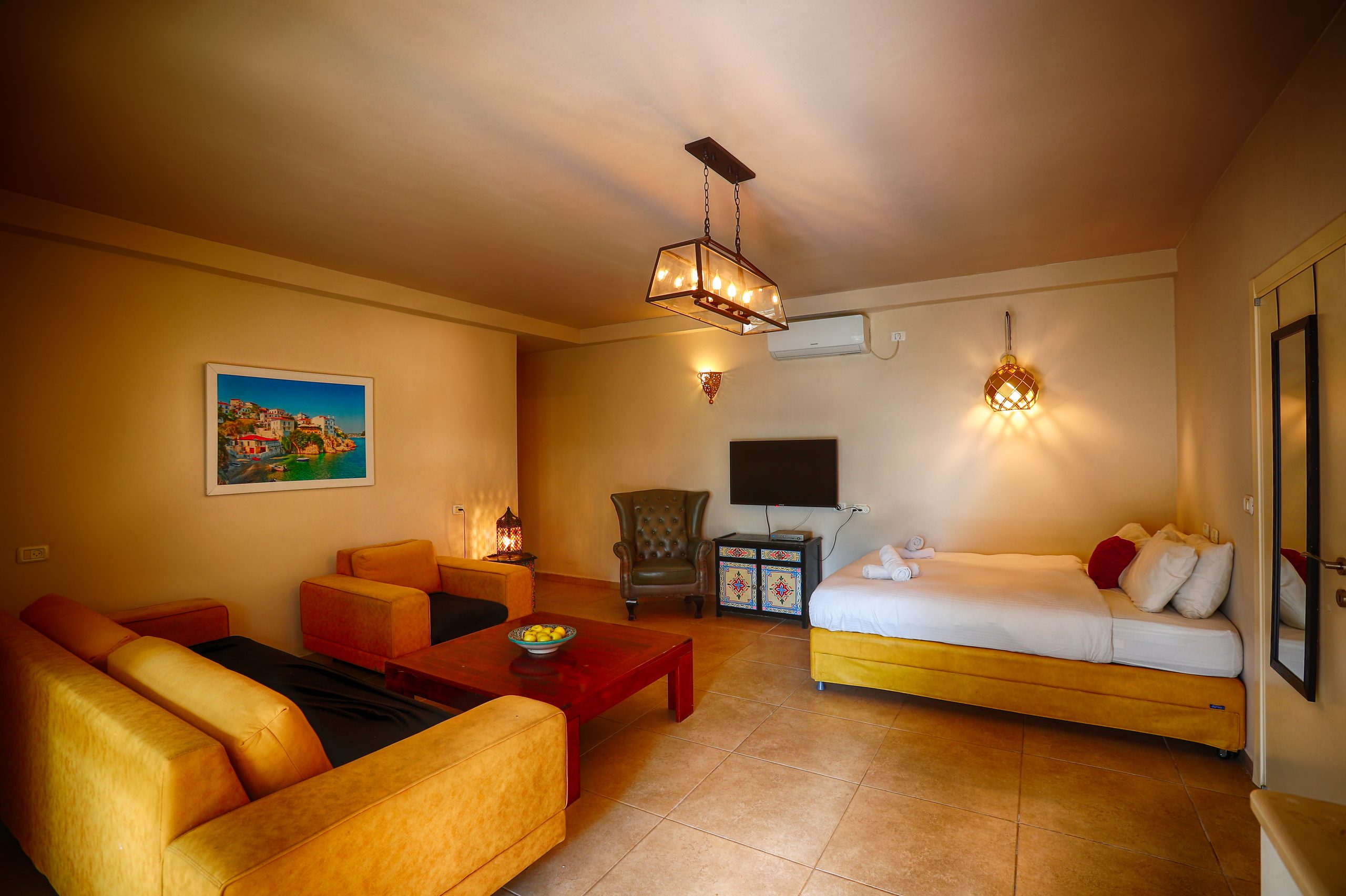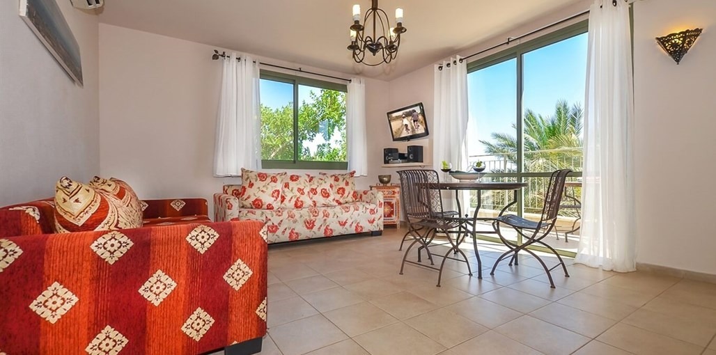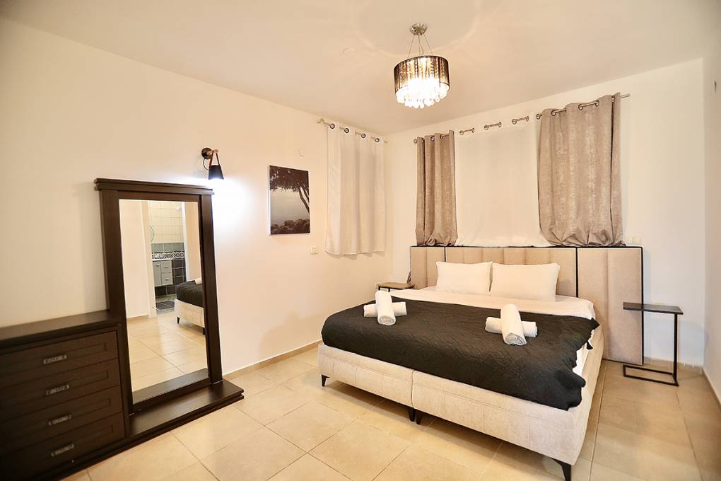 סוויטה מרווחת ונעימה, בסוויטה חדר שינה זוגי, סלון עם 2 ספות נפתחות לעוד 4 נפשות, טלוויזיה + כבלים, מטבח מאובזר הכולל : כיריים, מיקרוגל, קומקום, מקרר, פינת קפה וכלי בישול. חדר רחצה עם מגבות ותחליבי רחצה. לסוויטה יש יציאה למרפסת פרטית עם פינת ישיבה ומנגל פרטי.