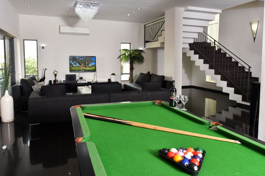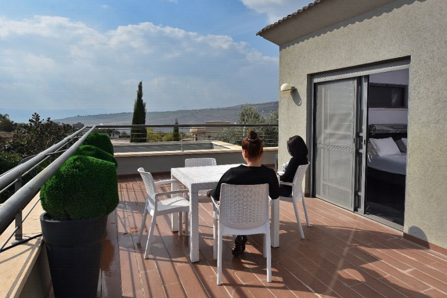 סלון גדול עם מערכות ישיבה מפנקות, שולחן סנוקר, טלוויזיה בחיבור לכבלים, 4 חדרי שינה מרווחים עם מיטה זוגית וטלוויזיה + כבלים, מטבח מאובזר במקרר, מדיח, מיקרוגל, כיריים חשמליות, קומקום, בר מים ופינת אוכל. מכונת כביסה, 4 חדרי רחצה בתוספת מגבות ותמרוקים. בקומה העליונה קיימת יציאה למרפסת נוף אשר ניתן לצפות ממנה על הכנרת.