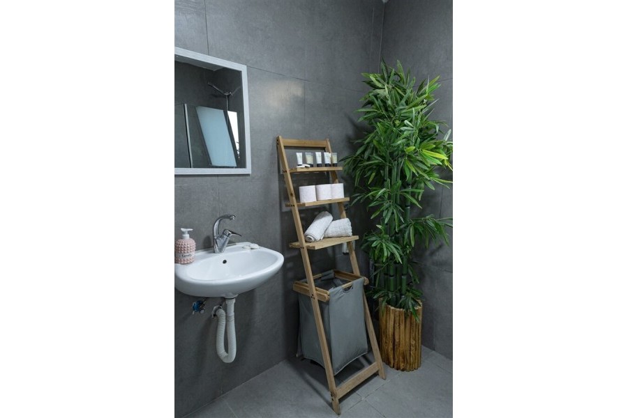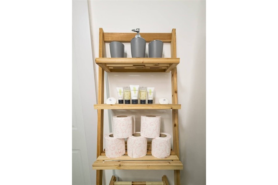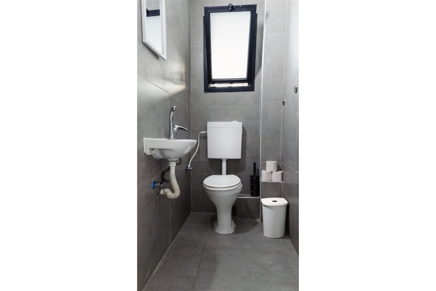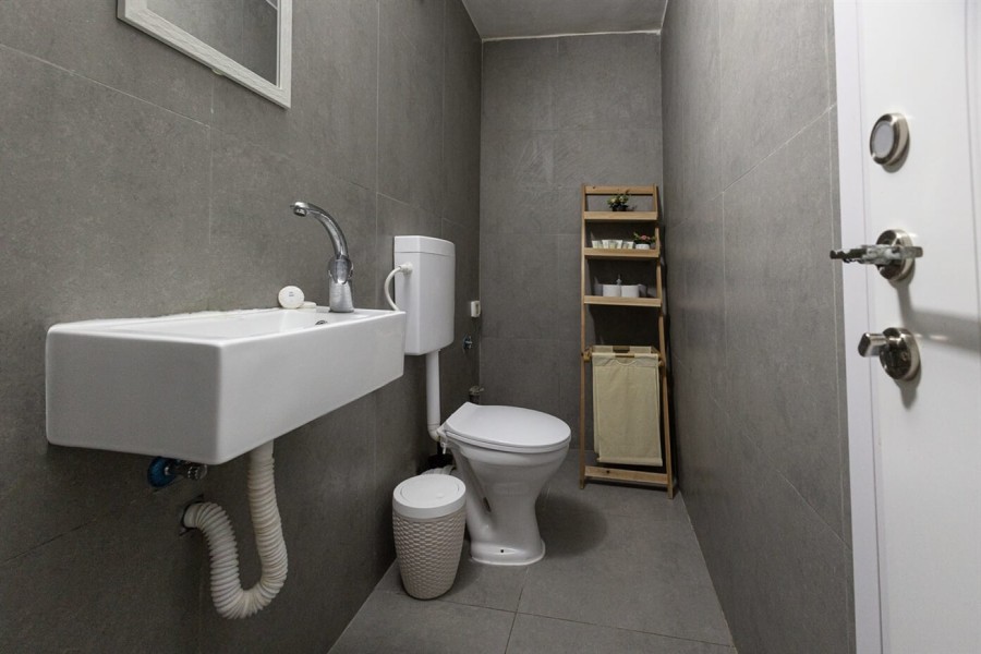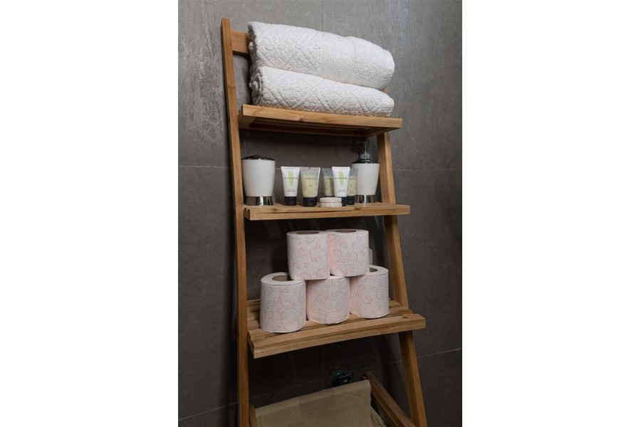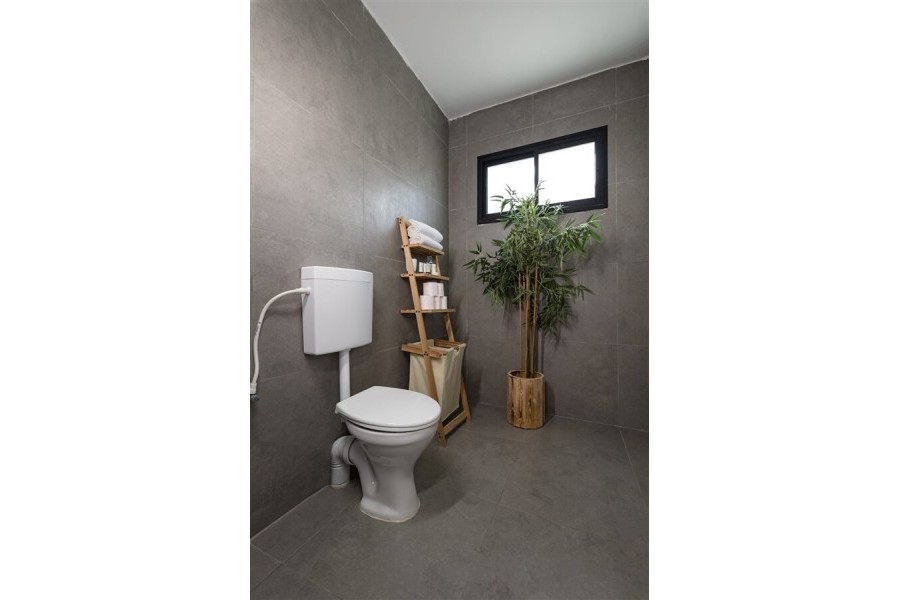 • חדר רחצה מוקפד עם שירותים, מקלחת, מגבות ותחליבי רחצה