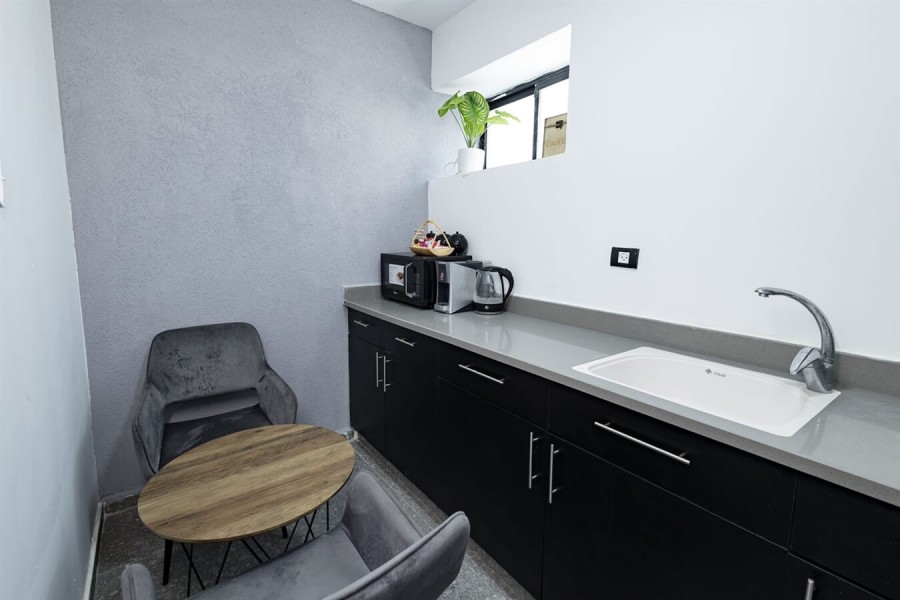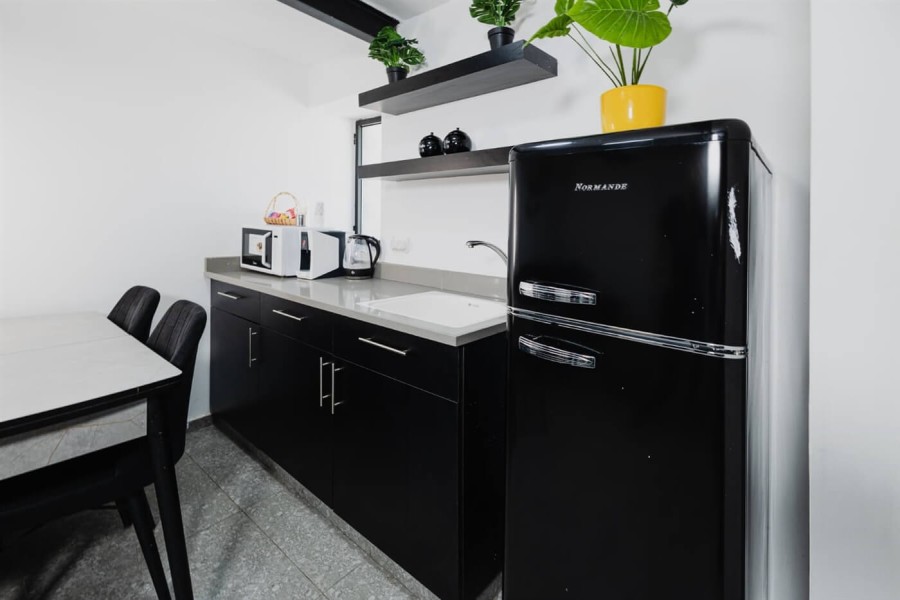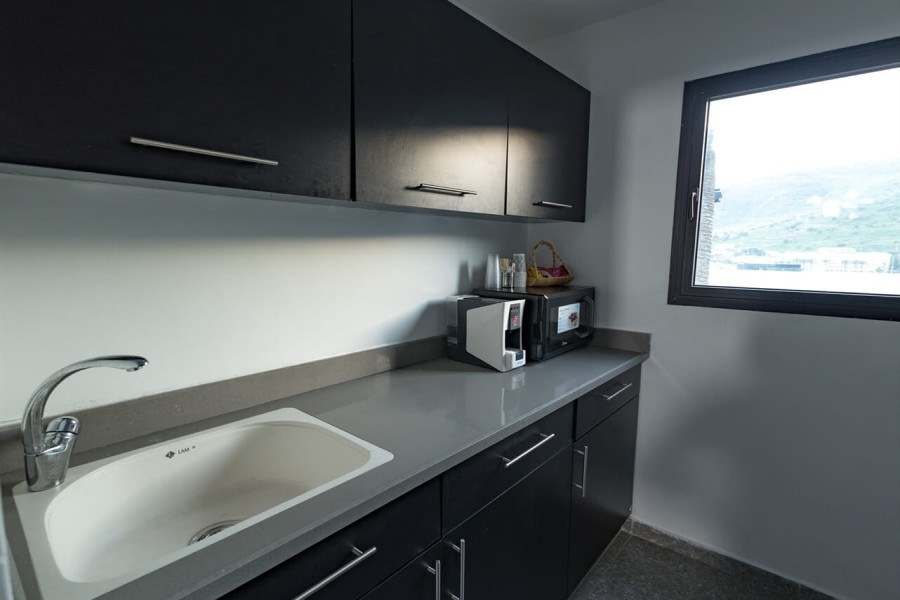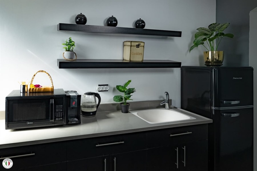 • מטבח מאובזר: פינת קפה, מכונת אספרסו, קומקום, מקרר, טוסטר, מיקרוגל, כיריים חשמליות, פינת אוכל ועוד