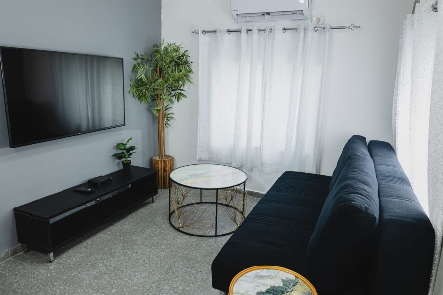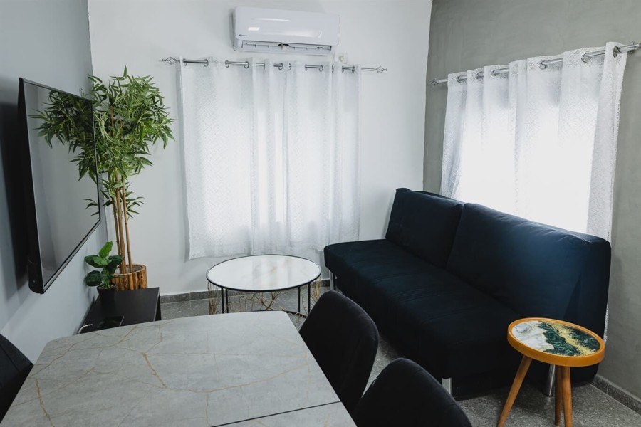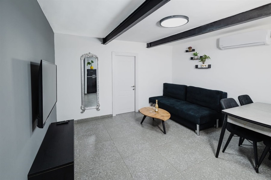 • סלון מרווח עם ספה נפתחת, מיטה נפתחת וטלוויזיה עם חיבור לכבלים