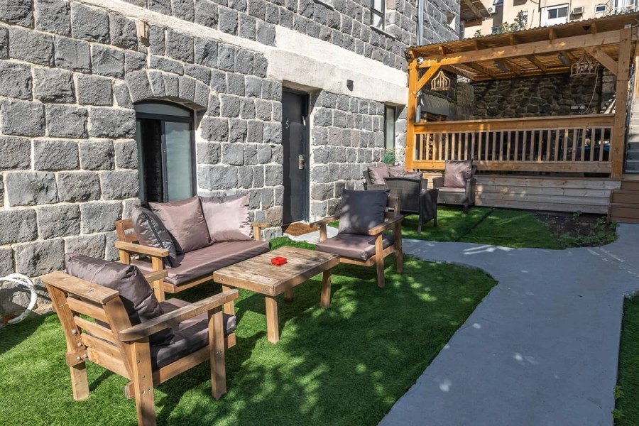 • חצר מושקעת עם פינות ישיבה מוצלות, מיטות שיזוף וערסלים