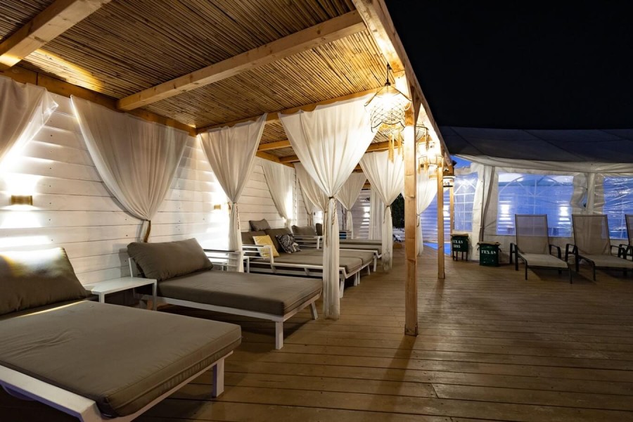 • פינות ישיבה מוצלות, מיטות שיזוף וערסלים