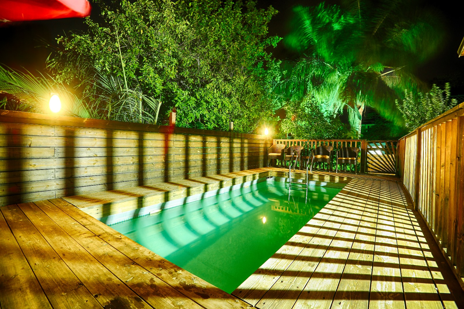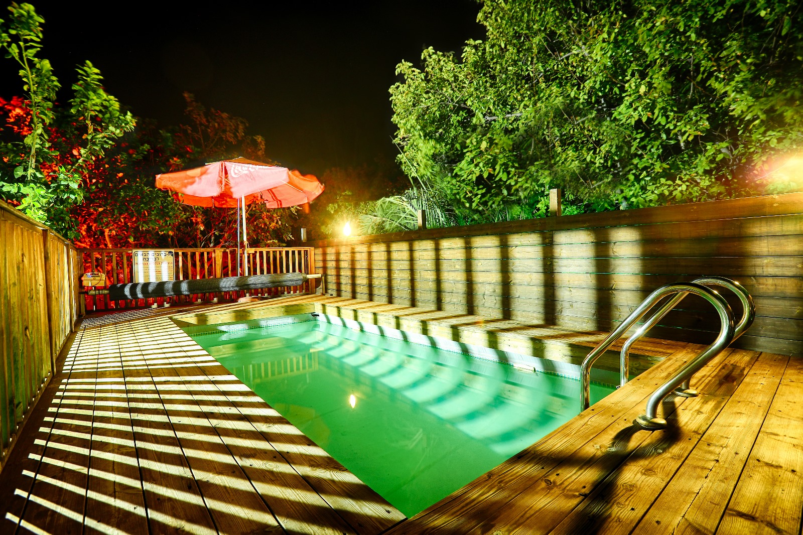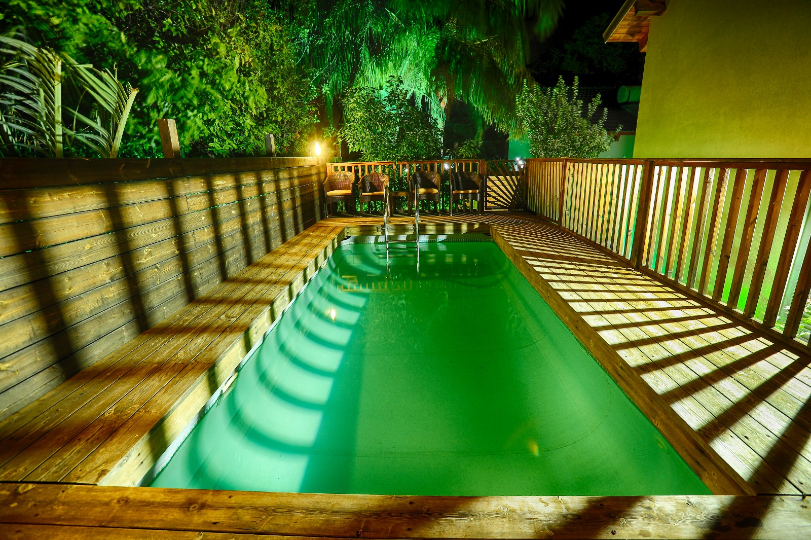 כל סוויטה זוכה למתחם פרטי משלה הכולל חצר מטופחת עם ג'קוזי ספא מרווח, פינת ישיבה, מיטות שיזוף ופינת מנגל. בנוסף, קיים מתחם חוץ משותף ל 2 הסוויטות בו תהנו מבריכה מגודרת, מחוממת ומקורה בחורף ומקרר חוץ.